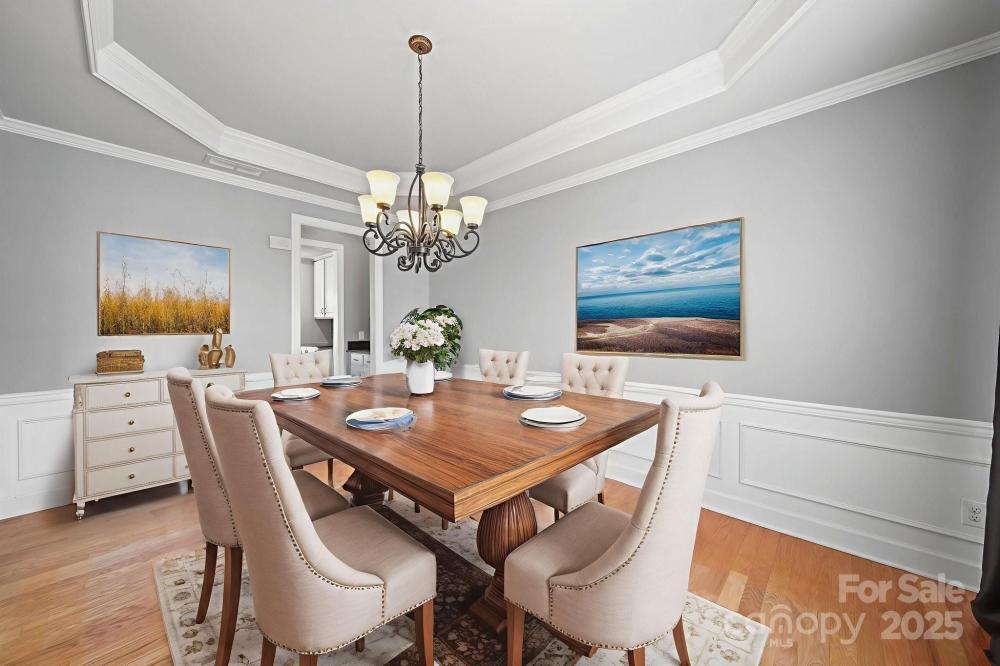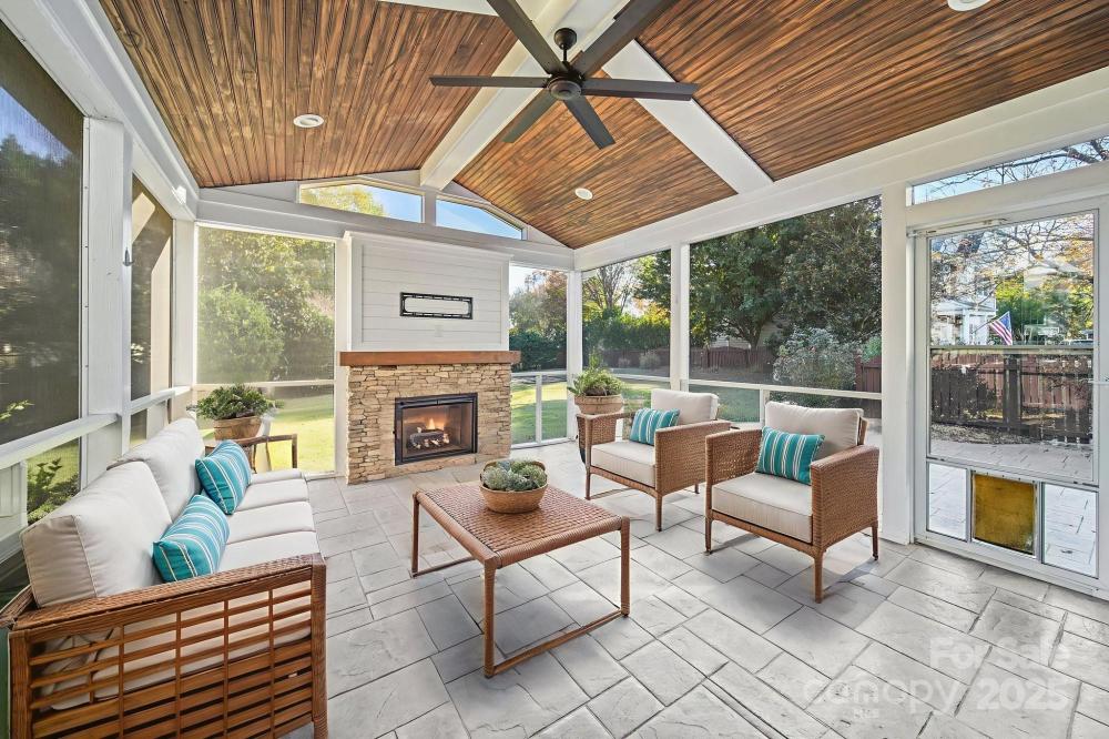 Experience elevated living in sought-after Cady Lake—just moments from Ballantyne’s premier shopping, dining, and top-rated schools! This beautifully updated 5-bed (or 4-bed + bonus) home blends timeless design with everyday comfort across 2,852 square feet of refined living space. A welcoming two-story foyer opens to light-filled formal living and dining areas, setting the stage for effortless entertaining. The heart of the home is the stunning kitchen—featuring white cabinetry, granite counters, stainless appliances, tile backsplash, and a spacious island that flows seamlessly into the cozy family room with gas fireplace. Upstairs, retreat to a generous primary suite with tray ceiling, and large walk in closet. The updated primary bath offers dual vanities, soaking tub, walk-in shower, and private water closet. Three additional bedrooms plus a versatile bonus/5th bedroom offer flexible options for work, play, or guests. Enjoy outdoor living in the large screened porch with fireplace overlooking a private, fenced backyard with mature trees—ideal for weekend gatherings or quiet evenings. Located in the friendly Cady Lake community with pool, lake, tennis/pickleball, and walking trails—minutes to Polo Ridge Elementary, Jay M. Robinson Middle, and Ballantyne Ridge High. Freshly painted and perfectly positioned for both lifestyle and convenience!