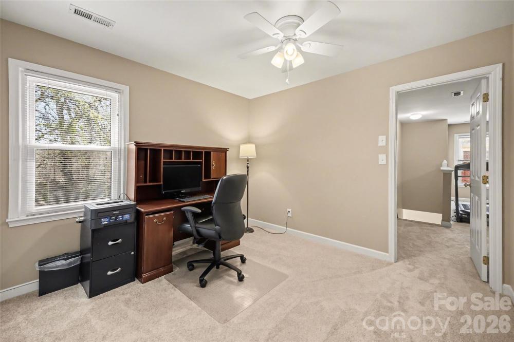 Nestled in the beautiful Berwick community of South Charlotte, this spacious 4-bedroom, 3.5-bath home offers nearly 3,000 square feet of comfortable living with a highly desirable primary suite on the main level. The main floor features an open layout that connects the family room, kitchen, and primary suite—creating an inviting space for both everyday living and entertaining. A convenient secondary staircase enhances the home’s thoughtful design and provides easy access between the main living areas and the upper level. Recent updates include a new roof, new carpet, and fresh interior paint throughout much of the home. All appliances are included along with premium-level home warranty protection for a year. Upstairs offers exceptional flexibility with three additional bedrooms, two full baths, a dedicated office, and a large bonus room—ideal for working from home, recreation, or guest space. A security system is already in place. Set on a .38-acre lot, the outdoor space is designed for relaxation and entertaining, featuring a fenced backyard, deck off the rear of the home, and a beautiful in-ground pool surrounded by a spacious terrace/patio. Berwick is known for its charming streets and convenient South Charlotte location just minutes from Piper Glen, Ballantyne, the Bowl at Ballantyne, The Amp amphitheater, and the Stonecrest and Toringdon shopping centers; with easy access to Trader Joe’s, Wegman's (later in 2026), excellent dining options, and Interstate 485.