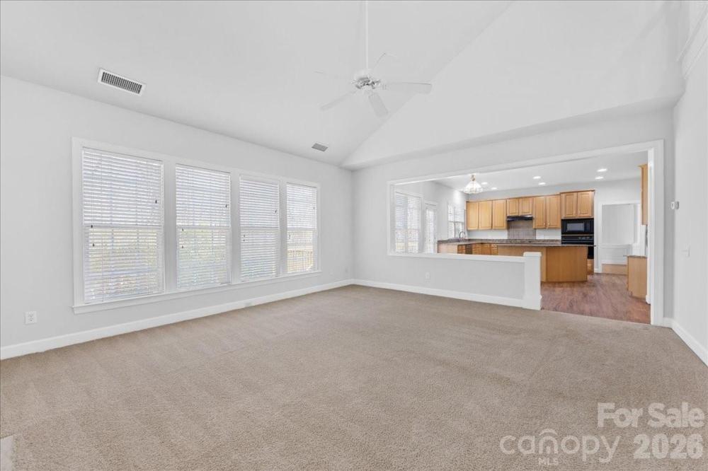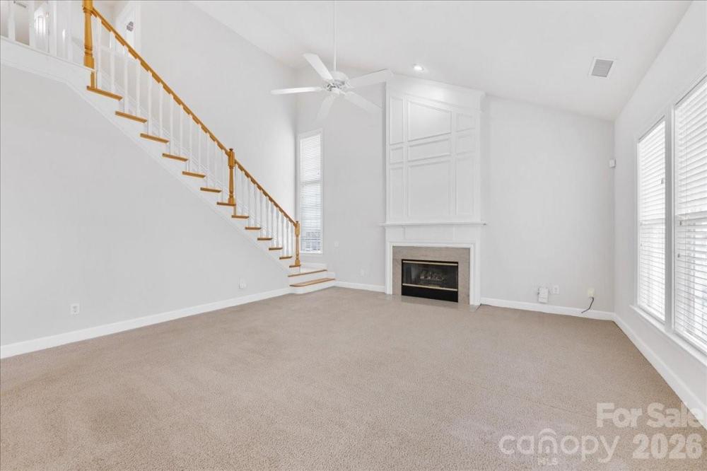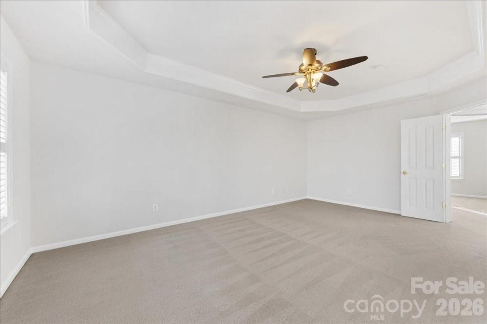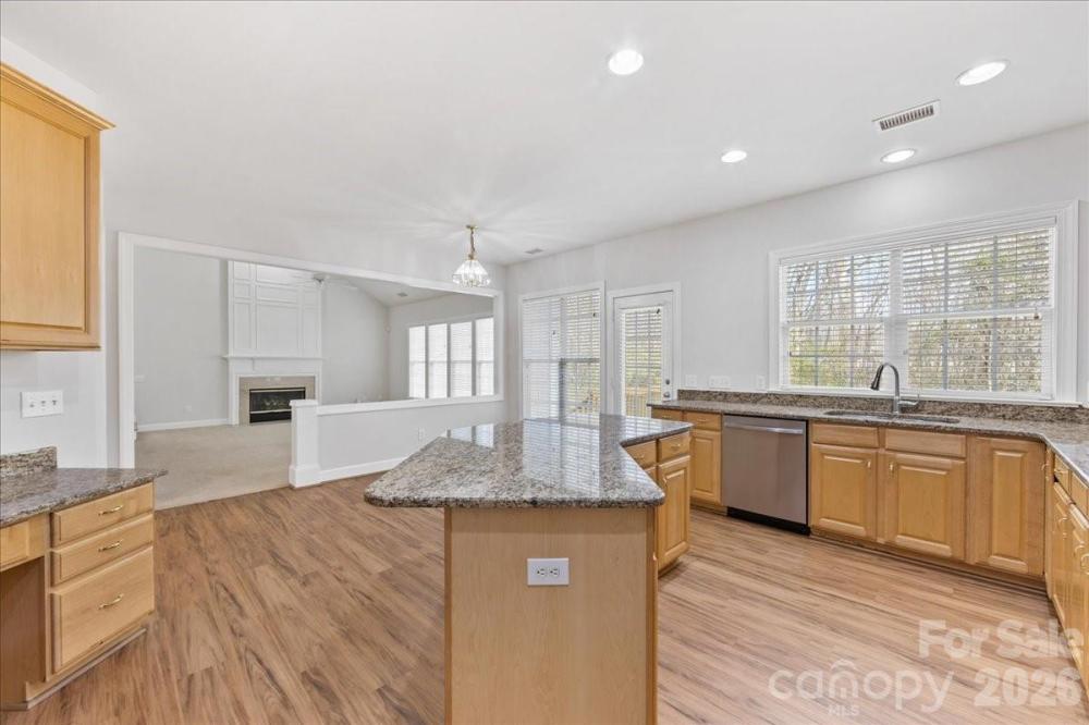 Welcome to this beautifully maintained home nestled in a vibrant community featuring a pool, tennis courts, pickleball, playground, scenic lake, and walking trails. Inside, you’ll find an inviting open floor plan perfect for everyday living and entertaining. The home features a tiled foyer, hallway, and half bath, along with plantation shutters in select areas. The vaulted great room is a true centerpiece with a cozy gas log fireplace. The spacious kitchen offers granite countertops, an abundance of cabinetry, and ample storage—ideal for any home chef. A dedicated office or den on the main floor provides flexibility for work or relaxation. The dining room and primary bedroom both showcase tray ceilings, adding architectural charm. The expansive primary suite includes a bath with separate shower and garden tub, dual sink vanity, and a large walk-in closet. Enjoy peaceful outdoor living on the rear deck overlooking wooded privacy with serene Flat Branch Creek views, plus a fully fenced backyard—perfect for pets, play, or relaxing outdoors. This home combines comfort, style, and a fantastic community setting—don’t miss your opportunity to make it yours!