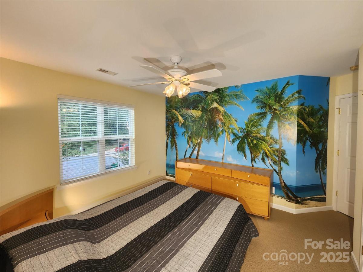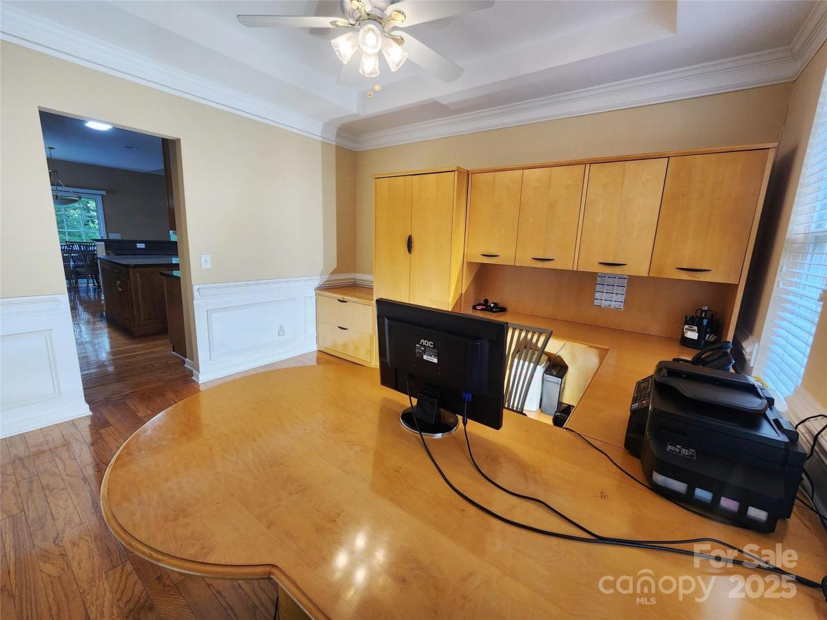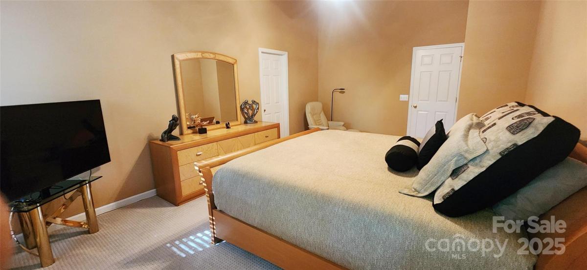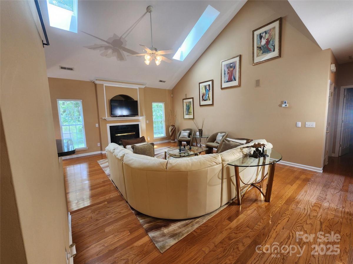 Meticulously maintained 5BR/2.5BA cul-de-sac home in the sought-after Southampton community includes a 2 year American Home Shield ShieldGold TM home warranty! A two-story foyer and vaulted family room with skylights and fireplace create a bright, spacious feel. The redesigned kitchen includes upgraded cabinetry, wine cooler, and liquor cabinet—while an adjoining office makes working from home easy. The spacious first-floor primary suite offers soaring ceilings, a spa-like bathroom with soaking tub and dual vanities, plus a custom walk-in closet. Upstairs: 3 bedrooms (one currently a gym with dry sauna (conveys)) plus a bonus/5th bedroom. Two walk-in attics offer great storage. Additional highlights include a finished garage with built-ins, fenced backyard backing to a wooded greenway for privacy, and sunny side yard perfect for a vegetable garden. Short walk to the pool and playground. Zoned for top-rated schools and just minutes to Ballantyne shopping, dining, parks, and I-485. Smoke-free, pet-free, and move-in ready—this home truly has it all!