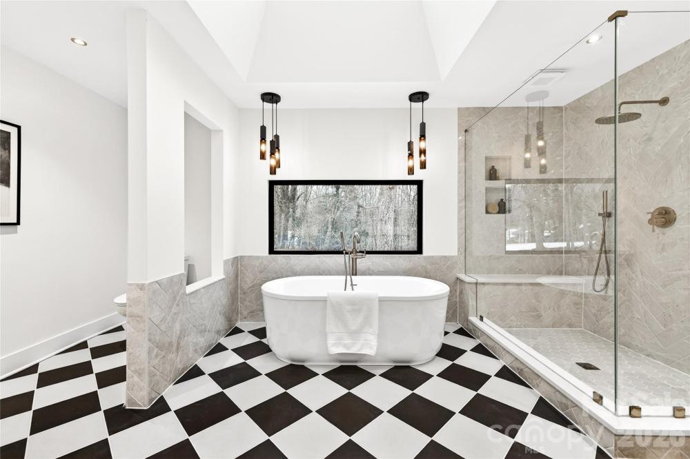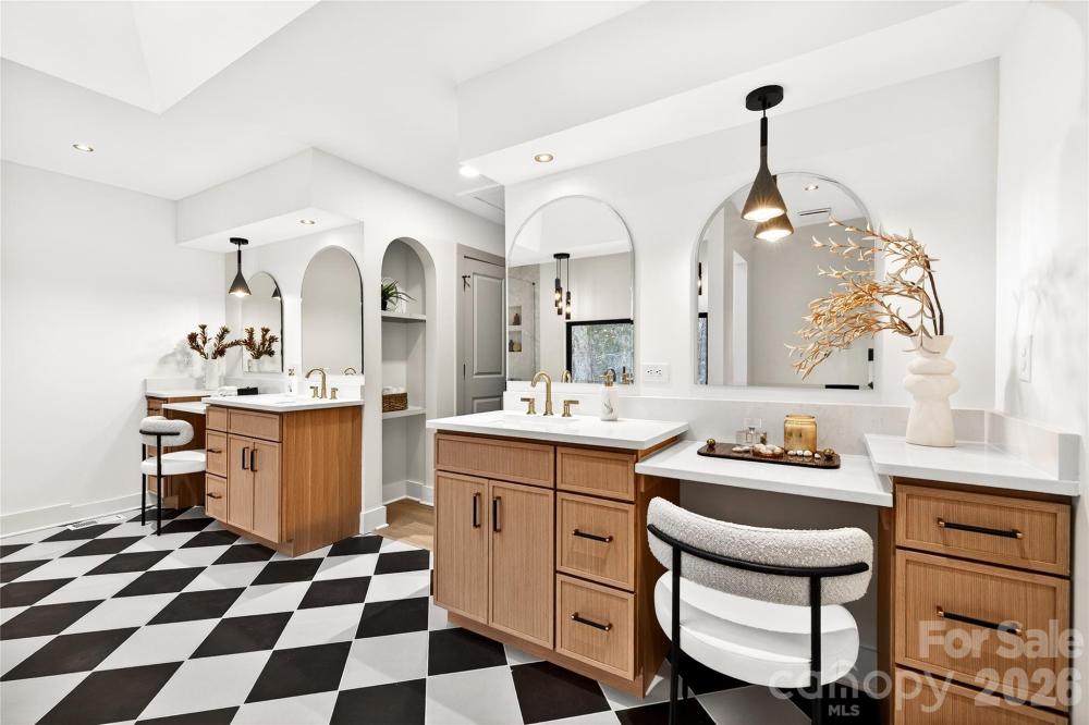 Welcome to 2011 E. Barden Road — a beautifully renovated five-bedroom, 3.5-bath home with over 2,800 square feet in the highly desirable SouthPark area of Charlotte. This home has been thoughtfully designed and renovated for both everyday living and entertaining. The showstopper is the luxurious primary suite, featuring what may be one of the most beautiful master bathrooms in the area. Enjoy a freestanding soaking tub, a spacious walk-in shower with bench seating, dual vanities with dedicated get-ready stations, and two separate walk-in closets with custom built-ins. The main level offers a seamless flow with a formal living room, dining room, and a bonus room featuring a cozy fireplace. The designer kitchen will leave you impressed with elegant cabinetry, quartz countertops, and a custom-built-in pantry. Step outside to a large deck overlooking the expansive backyard that underwent hardscaping and grading, a recently installed privacy fence, and is complete with a huge fire pit—perfect for entertaining or relaxing year-round. The rear yard is truly an impressive sight to see! Upstairs, you’ll find four additional bedrooms and two full baths, including an ensuite ideal as a second primary or guest suite, plus a shared bath for the remaining bedrooms. Situated on a 0.92-acre lot—nearly a full acre—on a quiet cul-de-sac, this home offers privacy and space while still being minutes to everything SouthPark has to offer. The neighborhood features voluntary HOA participation with no restrictions, giving you flexibility and freedom. This home is truly gorgeous and a must-see!
