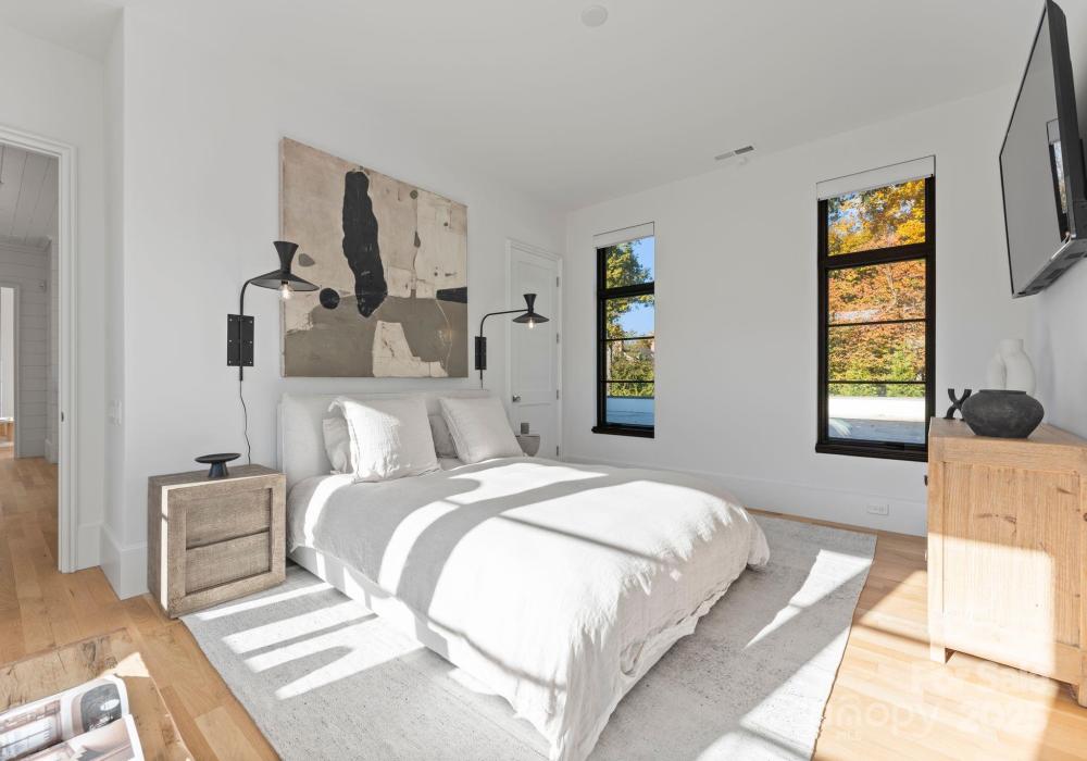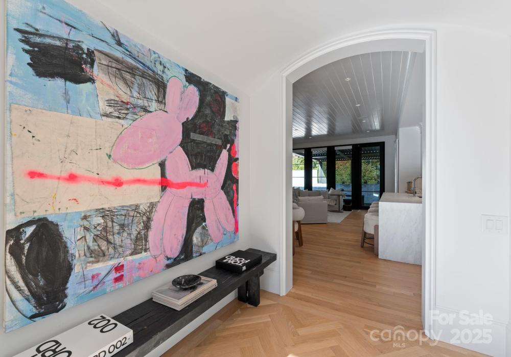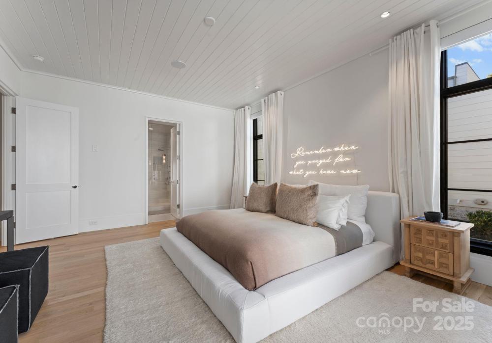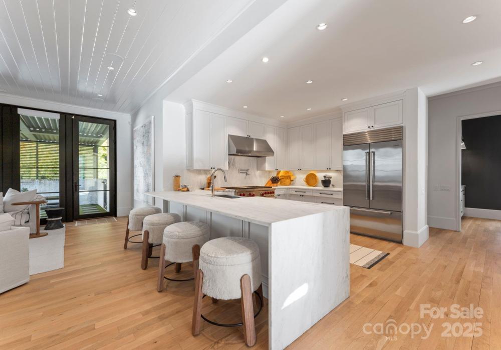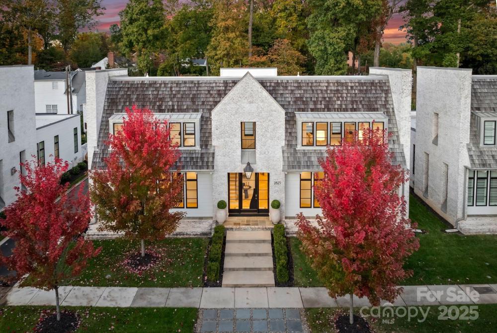 Tucked on a quiet cul-de-sac in one of Charlotte’s most sought-after areas, this residence blends refined luxury with modern comfort just minutes from SouthPark, Myers Park, Eastover, and Uptown. Its prime location offers walkable access to shops, restaurants, and medical facilities, with top public and private schools close by. Situated between Foxcroft and Cotswold, Kenwood Sharon Lane is an exclusive collection of ten custom homes designed by Don Duffy and artfully built by Thomasson Builders. Sold fully furnished, including curated pieces from designer furniture label Verellen, this home showcases impeccable craftsmanship, timeless finishes, and an effortless indoor-outdoor flow. The main level features a grand two-story foyer, 10’ ceilings, a powder room, and a stunning open-concept living and kitchen area. The chef’s kitchen is equipped with Sub-Zero, Wolf, ASKO, and Liebherr appliances, complemented by soft-close drawers, extensive custom cabinetry, and a walk-in pantry. The elegant main-level primary suite offers an expansive spa-inspired bath with dual vanities, heated flooring, a glass walk-in shower, and a freestanding tub, as well as a large custom walk-in closet with built-in shelving and storage. Additional main-level spaces include a butler’s pantry with a coffee bar, display shelving, and two wine refrigerators, an inviting living room with a modern gas fireplace and custom built-ins, a spacious family room, an office or formal sitting room, and a functional drop zone/laundry room with a dog wash and feeding station. Upstairs, two spacious guest suites each feature designer lighting, walk-in closets, and luxurious ensuite baths. Outdoor living is elevated with a covered rear patio featuring an electronically controlled louvered roof, a built-in TEC grill station, an outdoor fireplace, and beautifully landscaped surroundings with full security coverage. A rare turnkey offering in a prime Charlotte location!