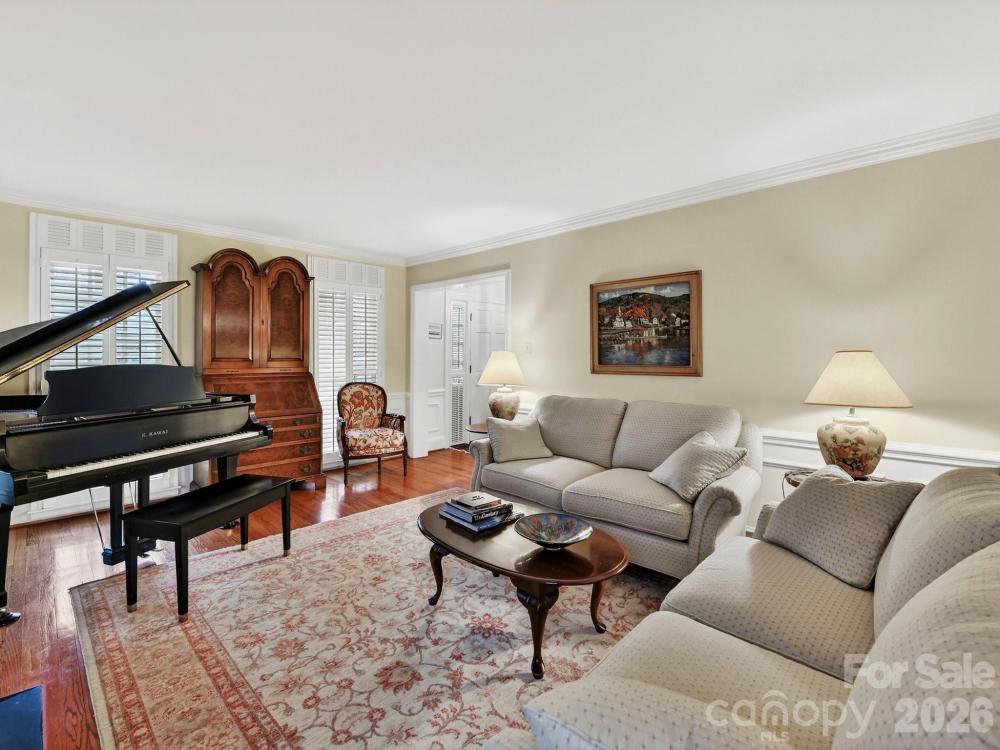 Unique opportunity to own stately brick Georgian on one of the most coveted streets in Barclay Downs! This home features 1986 addition with high ceilings in Kitchen, Family Room and Primary Bedroom. Huge Family Room w/exquisite cherry paneling, built-ins, gas fireplace and great views of private back yard. Spacious eat in Kitchen has Breakfast Bay, built in desk, white cabinets and SS appliances …..including 5 burner gas range, double oven, Sub-Zero refrigerator and wine cooler. Fully fenced back yard with lovely raised brick patio and storage shed. Additional Living space down includes Den with built-ins and wood fireplace, Living Room and formal Dining Room. Extensive hardwoods, beautiful molding and arch doorways provide so much character! Separate laundry room plus front and back staircases. Grand Primary Suite boasts 10 ft trey ceiling, built-ins, walk in closet with wood shelving and gas fireplace. Dedicated Office with Workspace-plus walk out to full length covered Veranda overlooking tree lined back yard. Great place for morning coffee or evening cocktails! Primary En Suite Bath includes separate vanity areas, walk in shower and large tub. The three secondary Bedrooms have hardwood floors, plantation shutters and En suite Baths with granite countertops. Pull down stairs provided access to ample Attic storage with flooring running length of house. Home has lots of upgrades including modern energy efficient Anderson windows 2015, custom plantation shutters and full house generator. Fully encapsulated and conditioned ATMOX crawl space. New 2 car Garage with brick facade and carriage doors in 2017. New roof in 2015 along with copper gutters and lanterns add to the ambiance. Extensively landscaped yard with mature flowering bushes, beautiful uplighting and full irrigation. Great location near SouthPark shopping and restaurants plus easy walk to top rated neighborhood schools.