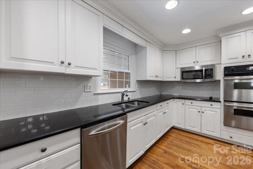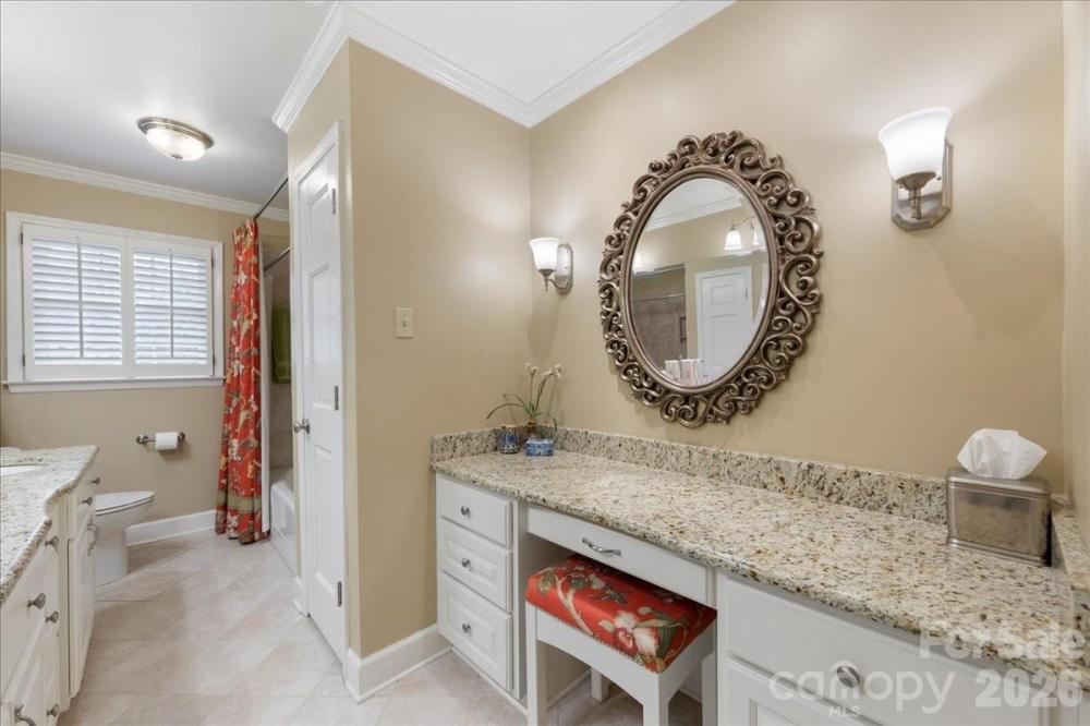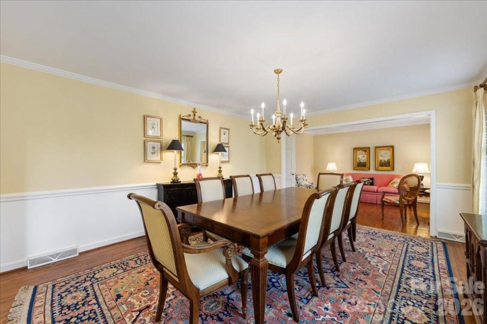 Located in the highly sought-after Mountainbrook community in SouthPark, this full brick 4-bedroom, 4-bath ranch offers timeless character, generous living spaces, and an exceptional .55-acre lot. Built in 1966 and lovingly maintained by only its second owner, the home blends classic Mountainbrook charm with thoughtful updates and flexible living areas. A welcoming foyer with traditional Mountainbrook slate flooring opens to spacious living areas including a large dining room, and a versatile sitting room adjacent to the kitchen. The bright white kitchen features granite countertops, tile backsplash, stainless appliances including double wall ovens, electric cooktop, microwave, and dishwasher. Real wood floors span throughout most of the living areas of the home except the bonus room and bedrooms. The comfortable rear living room is anchored by a brick fireplace with gas logs and built-ins, creating a warm gathering space with views of the backyard. Just off the kitchen is an impressive bonus room with built-ins, closets, sink, and mini-fridge—ideal as a recreation room, office or studio. A fourth full bath is conveniently located just outside the room, and the space is heated and cooled with a mini-split system installed in 2013. The expanded primary suite (2011) offers a spacious retreat with two closets, newer carpet, and serene backyard views. The updated primary bath features 2 sinks with granite countertops and a tiled walk-in shower. Three additional bedrooms provide generous space and flexibility, including one with an ensuite bath and two closets. Hardwood floors lie beneath the carpeting in these bedrooms. Additional highlights include solid wood interior doors, multiple linen and storage closets, pull-down attic storage with flooring and shelving, and a convenient laundry area (washer and dryer negotiable). Outdoor living is equally appealing with a beautiful glass sunroom featuring slate floors, a multi-level deck, and a flat backyard surrounded by mature landscaping. The property also includes a two-car carport with storage closet, spacious driveway, and two storage sheds. Mountainbrook residents enjoy access to a private neighborhood park (Anne Heinig Park) where many neighborhood events are held and an active civic association, with voluntary annual dues (www.mountainbrookliving.org). There is an additional membership required to join the Mountainbrook Swim & Racquet Club located adjacent to the park. (www.mountainbrookclub.net) Come see it today, this opportunity to own a 3037sf classic brick ranch in one of SouthPark’s most beloved neighborhoods won't be around long!