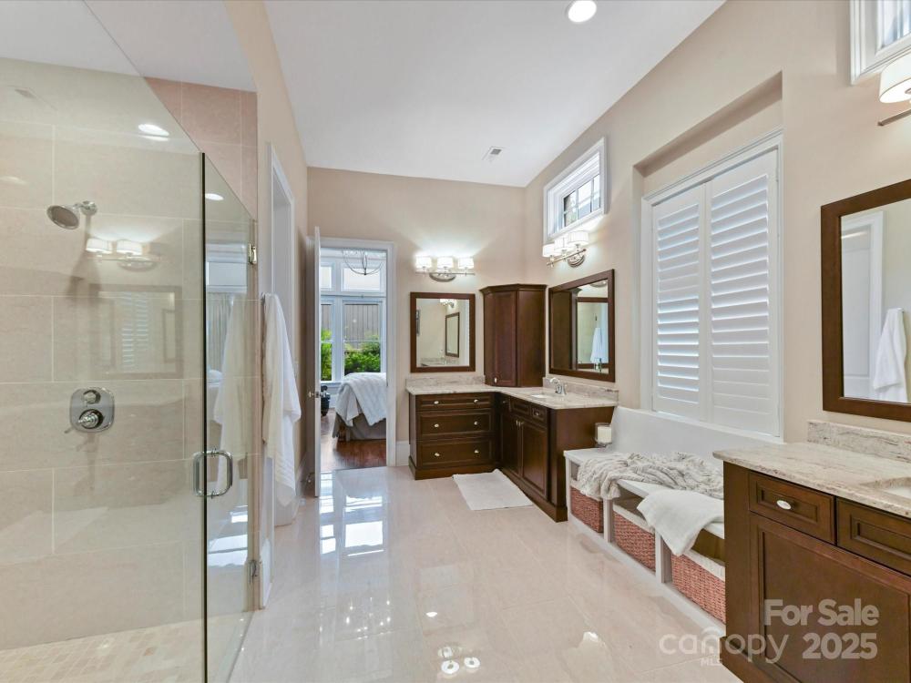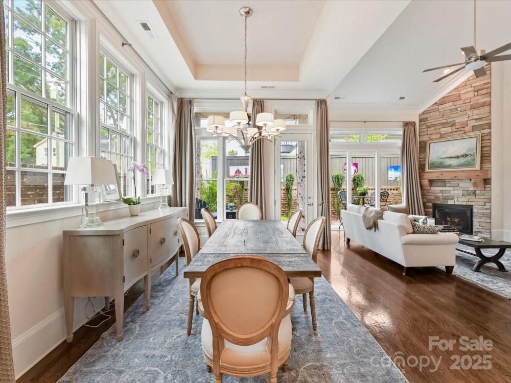 Thoughtfully designed for buyers who value location, ease, and low-maintenance living, this refined SouthPark home offers true lock-and-leave convenience without sacrificing quality or comfort. Step-free entry, soaring 12-foot ceilings, and a light-filled open layout create a sense of calm and efficiency for everyday living and entertaining. The chef’s kitchen, centered around a generous island, opens seamlessly to the dining area and great room with fireplace, ideal for relaxed gatherings and daily life. A private study with its own fireplace and a main-level laundry room add flexibility and function. The primary suite is designed for comfort and simplicity, featuring a spa-inspired bath with zero-entry shower and a well-appointed walk-in closet. Upstairs, a dramatic spiral staircase leads to an inviting landing with dry bar and wine-tasting niche, three en-suite bedrooms, and a sound-wired media room - perfect for guests, work, or quiet evenings at home. Hardwood floors, stone fireplaces, and custom cabinetry throughout the main level create a polished yet approachable atmosphere. Built just 10 years ago, the home is well suited for buyers seeking minimal upkeep, with HOA-provided lawn care, a private courtyard with grilling area, and additional garage storage. Ideally located minutes from Phillips Place, Whole Foods, and SouthPark Mall, with quick access to Uptown, South End, and CLT Airport, this home offers a smart, lifestyle-forward opportunity in one of Charlotte’s most convenient locations.