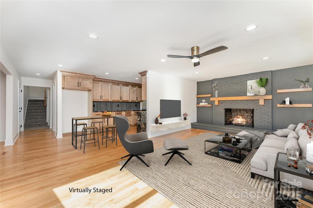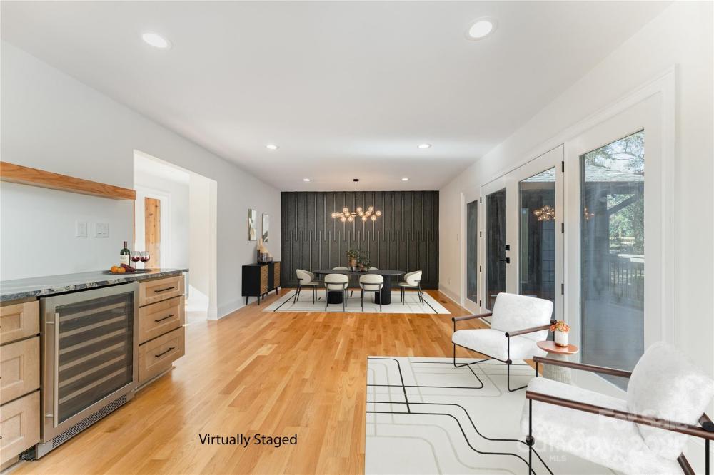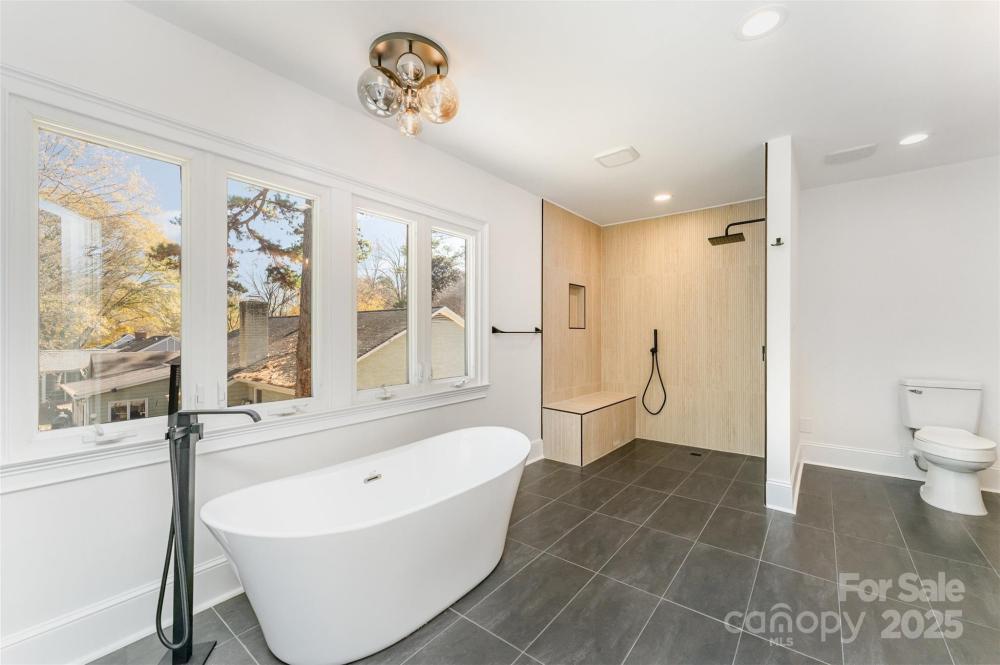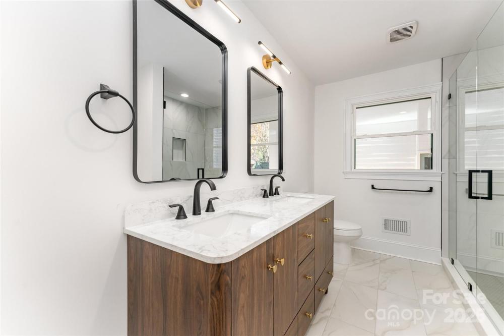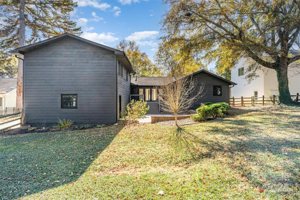 Welcome to this beautifully renovated modern 4-bedroom, 3-bathroom home that perfectly blends style, comfort, and versatility. This thoughtfully updated residence offers two primary suites, providing flexible options for a private guest retreat, home office, or creative flex space. The newly added primary suite is a true showstopper, featuring a luxurious spa-inspired wet room with a freestanding soaking tub and a sleek glassless walk-in shower. Every detail has been carefully designed to create a relaxing, modern retreat. The renovated kitchen is the heart of the home, showcasing brand-new cabinetry, stunning granite countertops, a full pantry, and a separate laundry room. An open-concept layout connects the kitchen to the dining and living areas, where a large fireplace adds warmth and character. The dining area includes a built-in beverage station with a beverage fridge, ideal for entertaining guests or enjoying your morning coffee. Throughout the main living areas, you’ll find refinished hardwood floors, while the bedrooms and bathrooms feature new carpet and tile, giving each space a fresh, cohesive feel. Step outside to discover a completely redesigned exterior, including a welcoming custom cedar front porch, modern metal railings, and raised planters that enhance the home’s curb appeal. The backyard is an inviting retreat, with a covered porch leading to a paved patio, surrounded by lush green space and mature trees—a perfect spot for outdoor gatherings or quiet relaxation. Located in the established Woodbridge neighborhood, this home offers both tranquility and convenience—just minutes from SouthPark, with easy access to Uptown Charlotte, Ballantyne, shopping, dining, and major commuter routes. This stunning renovation is move-in ready and designed for modern living—a rare find in one of Charlotte’s most desirable areas! This home is built on a crawlspace as well and features a sump pump, dehumidifier, and encapsulated crawlspace.