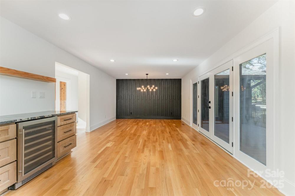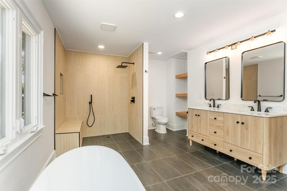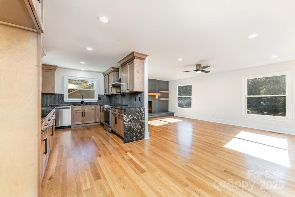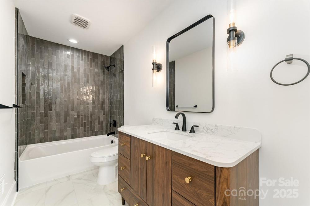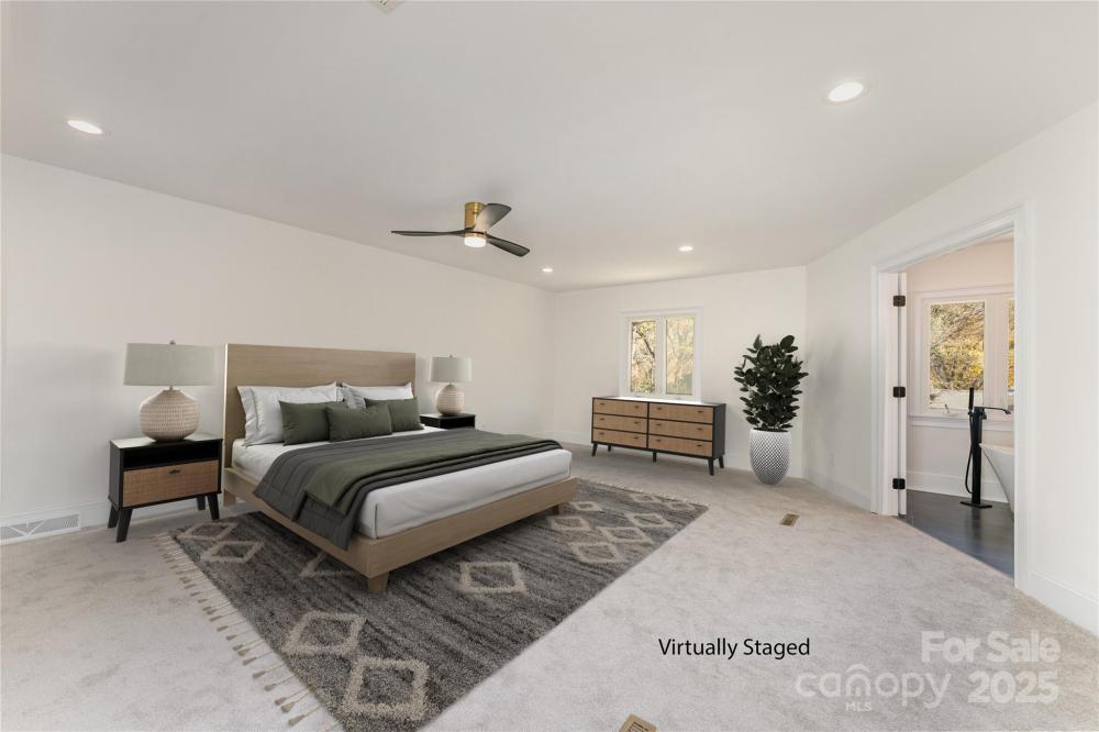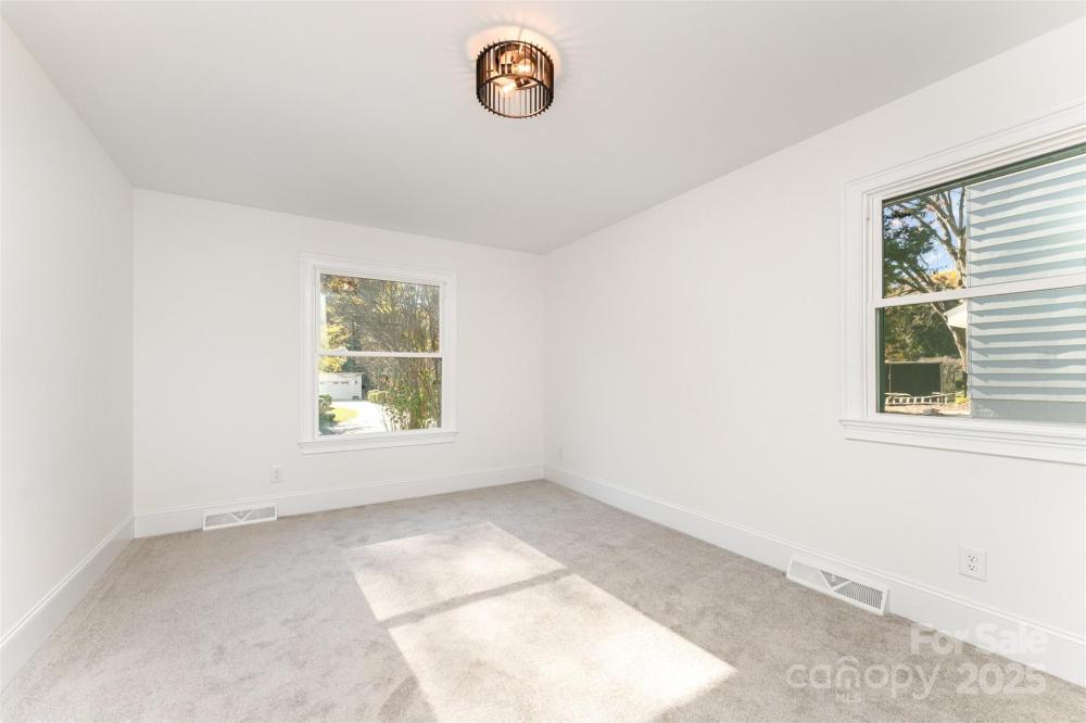 Welcome to this beautifully renovated modern 4-bedroom, 3-bathroom home that perfectly blends style, comfort, and versatility. This thoughtfully updated residence offers two primary suites, providing flexible options for a private guest retreat, home office, or creative flex space. The newly added primary suite is a true showstopper, featuring a luxurious spa-inspired wet room with a freestanding soaking tub and a sleek glassless walk-in shower. Every detail has been carefully designed to create a relaxing, modern retreat. The renovated kitchen is the heart of the home, showcasing brand-new cabinetry, stunning granite countertops, a full pantry, and a separate laundry room. An open-concept layout connects the kitchen to the dining and living areas, where a large fireplace adds warmth and character. The dining area includes a built-in beverage station with a beverage fridge, ideal for entertaining guests or enjoying your morning coffee. Throughout the main living areas, you’ll find refinished hardwood floors, while the bedrooms and bathrooms feature new carpet and tile, giving each space a fresh, cohesive feel. Step outside to discover a completely redesigned exterior, including a welcoming custom cedar front porch, modern metal railings, and raised planters that enhance the home’s curb appeal. The backyard is an inviting retreat, with a covered porch leading to a paved patio, surrounded by lush green space and mature trees—a perfect spot for outdoor gatherings or quiet relaxation. Located in the established Woodbridge neighborhood, this home offers both tranquility and convenience—just minutes from SouthPark, with easy access to Uptown Charlotte, Ballantyne, shopping, dining, and major commuter routes. This stunning renovation is move-in ready and designed for modern living—a rare find in one of Charlotte’s most desirable areas! This home is built on a crawlspace as well and features a sump pump, dehumidifier, and encapsulated crawlspace.