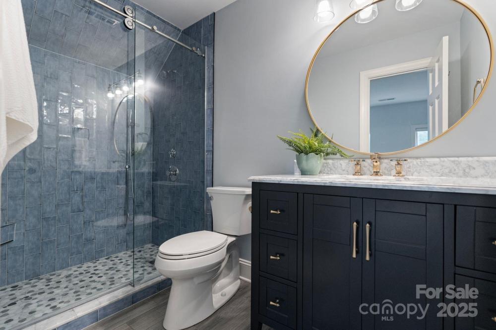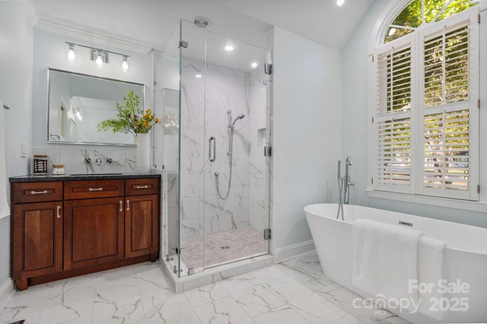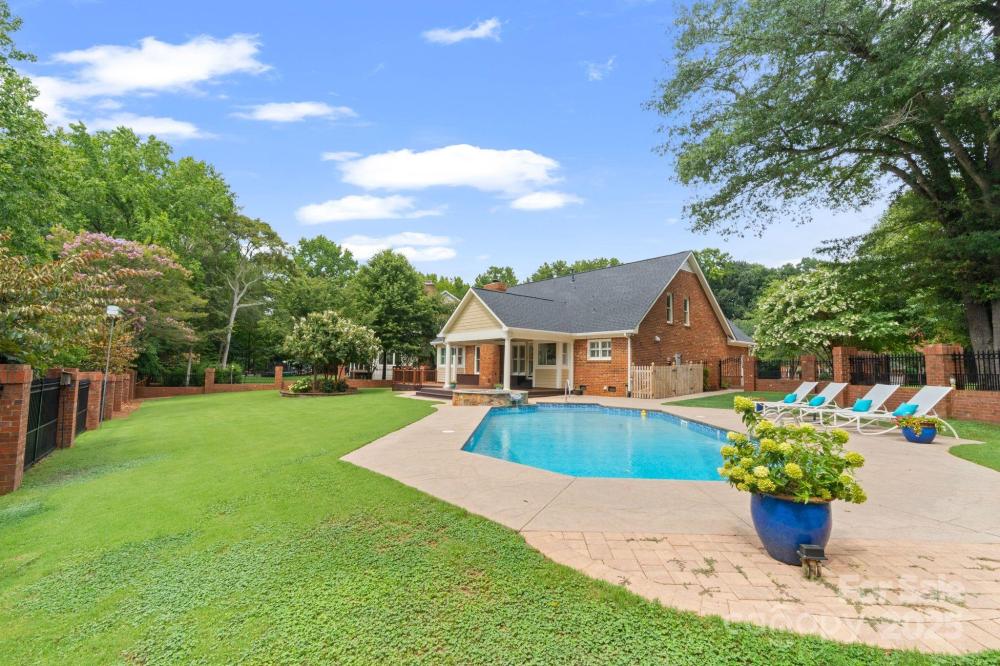 Quite literally the best view in Ballantyne! This 3-bed/4-bath, brick home offers 2,841 sq ft of refined living space designed for both comfort and sophistication. Perfectly positioned on a quiet cul-de-sac with serene waterfront views and lake access, this home delivers a rare blend of peacefulness and privacy in a great location! Step inside to discover beautiful hardwood floors that flow seamlessly throughout the main living spaces. The gourmet kitchen featuring a Viking range and microwave, is the heart of the home, with gleaming stainless steel appliances, a granite island, and abundant cabinetry—ideal for both everyday living and entertaining with ease. Enjoy peace of mind with a new 2025 roof, fresh interior paint, sealed crawl with dehumidifier and a generator. Every bathroom has been beautifully updated, bringing a fresh, modern elegance to the home. The main-level primary suite is a private retreat, complete with a new luxurious spa-inspired bath, his & her walk-in closets, and tranquil views of the backyard oasis from the sitting window. Two additional bedrooms upstairs PLUS a bonus room, provide spacious accommodations for family or guests, each bedroom complemented by their own stylish baths. The outdoor living space is equally impressive. Enjoy the heated (2025 heater) saltwater pool, relaxing hot tub, covered Archadeck built porch with extended Trex decking, and custom fenced yard overlooking the lake—perfect for holiday gatherings or quiet mornings by the pool. Situated in the sought-after Providence High School district, across from Jay M. Robinson, this home offers access to top-rated schools and the convenience of nearby shopping, dining, and recreation. With timeless design, thoughtful updates, and a setting that feels worlds away yet close to everything, this home captures the essence of luxury living in South Charlotte.
