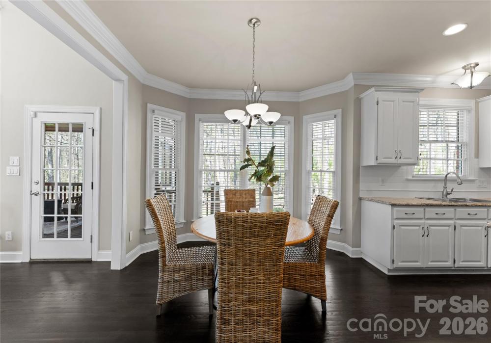 This home offers a fantastic floor plan with over 3,800 square feet and multiple flexible spaces designed to fit the way you live. High ceilings and abundant natural light create an open, airy feel throughout. Upon entry, you’re welcomed by a versatile living room that can easily function as a home office. The impressive two-story family room is filled with natural light from expansive windows. The spacious primary suite is conveniently located on the main level and features a bright, inviting atmosphere. Enjoy outdoor living on the screened porch and stone patio, both overlooking the backyard and a private wooded area. Upstairs, you’ll find three generously sized bedrooms and two updated full bathrooms, along with a large bonus room. An additional flex space, separated by glass doors, provides even more options for work, play, or relaxation. There is also approximately 300 square feet of unfinished storage space, ready to be customized—offering an excellent opportunity to add both living space and equity. The roof was replaced in 2022 and the water heater was replaced with a tankless in 2023. Situated on a quiet cul-de-sac street in Providence Country Club, this home offers optional membership and a prime location just minutes from shopping, dining, and easy access to I-485.