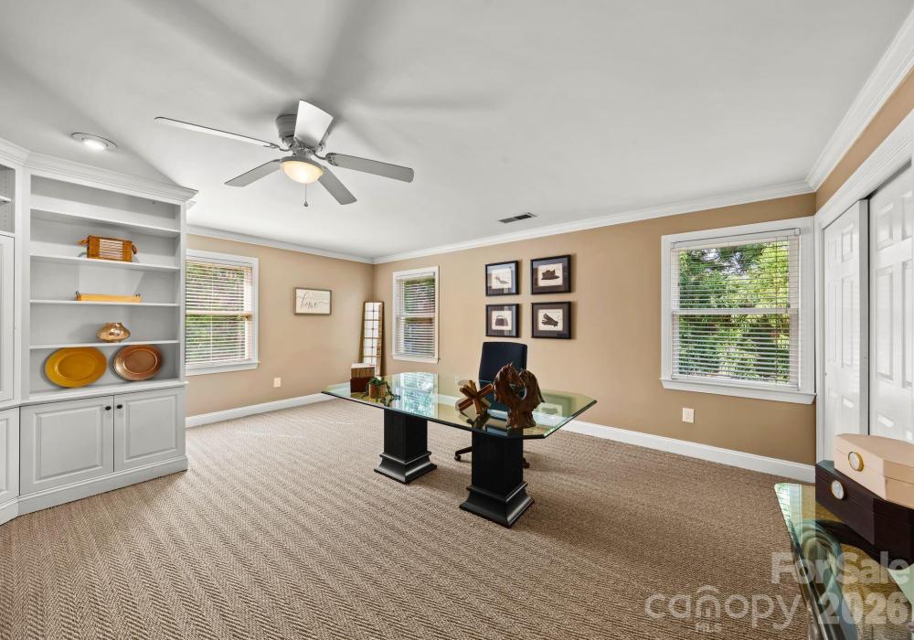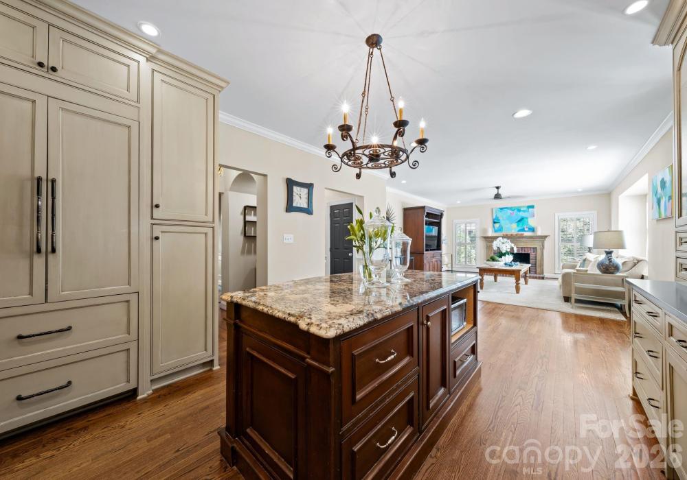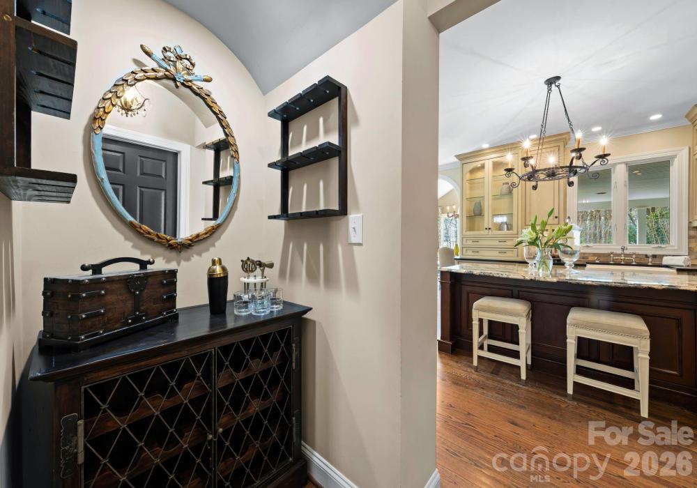 Tucked away on a picturesque corner lot in the highly desirable Preserve at Belingrath community, this elegant residence offers a refined blend of timeless architecture, updated finishes, and expansive living spaces. Spanning over 5,600 square feet across three beautifully finished levels, the home showcases crown molding throughout, designer lighting, and thoughtfully curated architectural details. A grand two-story foyer creates a striking first impression, opening to warm, inviting spaces including a formal dining room and a sophisticated sitting room. The main living area is centered around a beautiful brick fireplace, creating a natural gathering space. The kitchen serves as the heart of the home, featuring floor-to-ceiling custom cabinetry, an oversized island, premium appliances, under-cabinet lighting, and a well-appointed butler’s pantry with wine display and walk-in storage. The adjacent breakfast area and living spaces flow seamlessly to the screened porch and outdoor patio for effortless indoor-outdoor living. Upstairs, the primary suite offers a private retreat with a tray ceiling, custom built-ins, dual walk-in closets, and a spacious bath with dual vanities and an expansive tiled shower. Three additional bedrooms, including a guest suite with an ensuite bath, provide flexibility, while a versatile bonus room is ideal for a media room, playroom, fitness space, or home office. The finished lower level is a standout, offering an exceptional extension of living and entertaining space. It features multiple gathering areas, a full bar with cabinetry and refrigeration, built-in shelving, and a dedicated entertainment area, along with a private guest bedroom, full bathroom, and flexible space for a home office, gym, or lounge. With direct access to the backyard, this level seamlessly connects indoor and outdoor living. Outdoor living is equally impressive, with a screened porch, multiple patios, and a beautifully landscaped, fully fenced backyard. The tiered yard design, mature trees, and stone accents create a sense of privacy and character, while the included playset with slides and swings adds a functional and inviting space for recreation. Additional highlights include a circular driveway addition, a two-car garage with built-in storage and a ChargePoint EV charger, and well-designed drop zone and laundry areas. Recent upgrades include extensively refreshed paint, new lighting, updated appliances, and a tankless water heater. Located in a welcoming, established neighborhood known for its friendly atmosphere and tree-lined streets, this home offers a true sense of community. Just minutes from SouthPark, enjoy premier shopping, dining, and everyday conveniences, along with easy access to major roadways, Uptown Charlotte, top-rated public and private schools, and nearby parks.