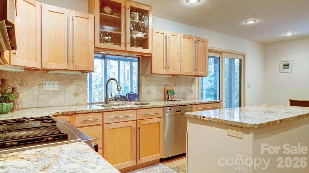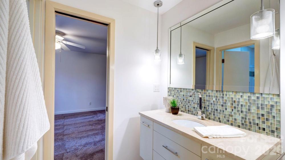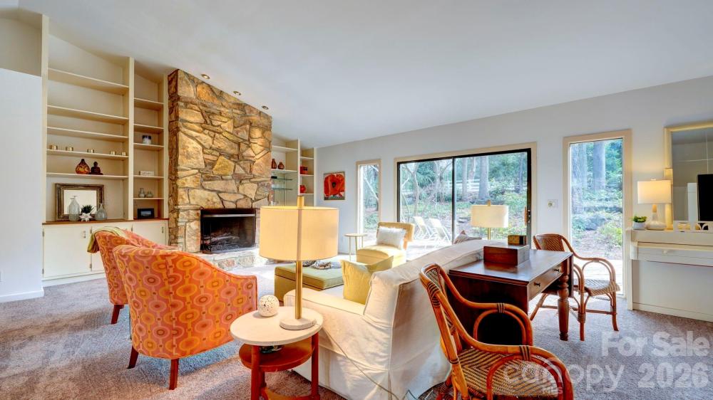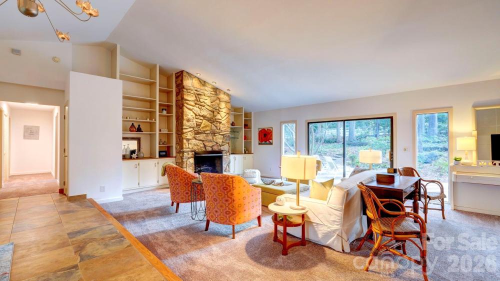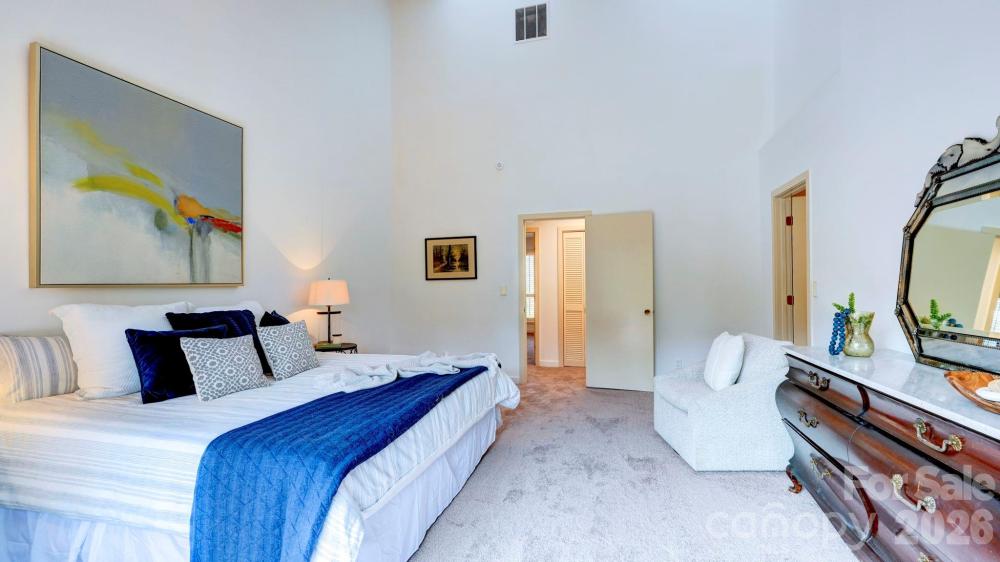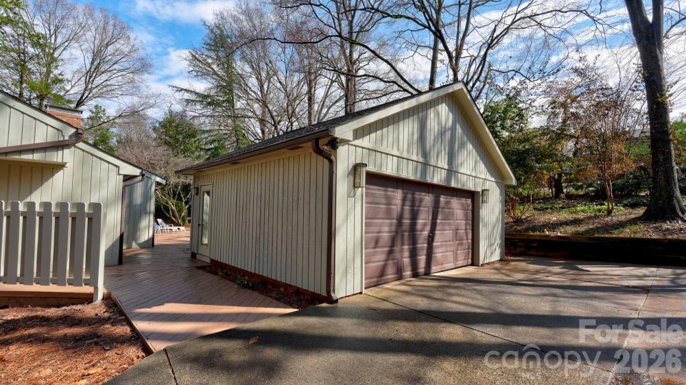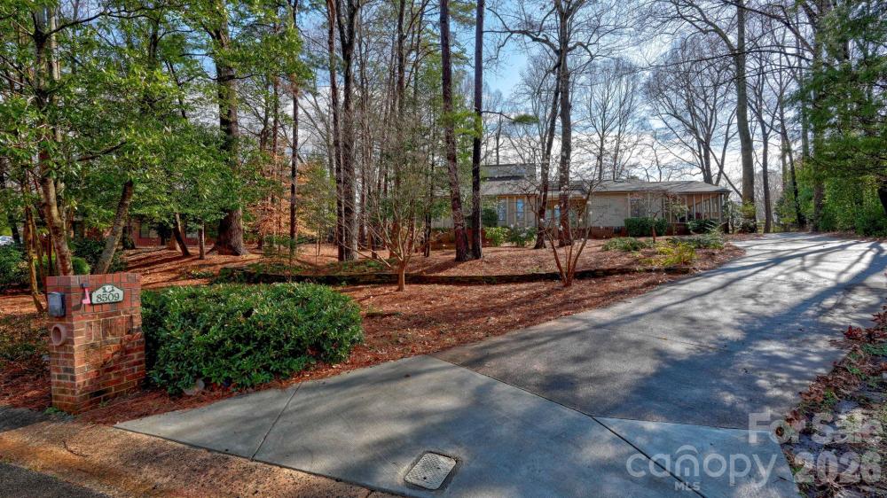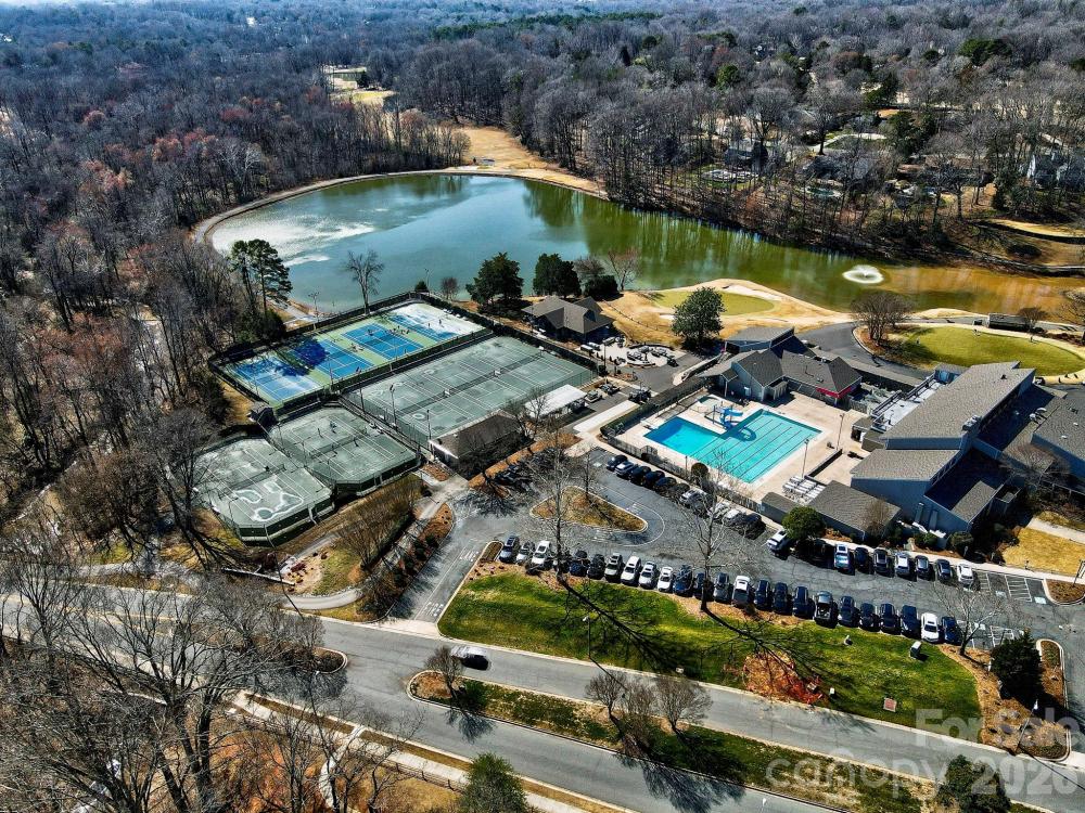 This coveted Raintree classic is ready for its new owner, offered for sale for the first time in 20 years. Situated on a private lot on quiet Waters Point Court, this one-level contemporary has fantastic outdoor spaces, with a back deck/patio spanning the length of the house, plus a 346 square foot screened porch for relaxing and dining al fresco. Freshly painted inside and out, this home has a spacious entry way which leads to the vaulted living room with built-ins and fireplace. It connects to dining, and to the kitchen with granite countertops, island, and breakfast area. A wall of sliding glass doors open to the back deck from the living/dining and from the primary suite, a spacious vaulted bedroom with walk-in closet and large bath. There are two more bedrooms, connected by an updated jack-n-jill bath. There's a storage/flex space (the perfect home office or gym), and a 2-car garage. New carpet in the living areas and bedrooms, and plantation shutters across the front of the house. Located on a cul-de-sac street bordering one of Raintree's lakes, with easy access in and out of the neighborhood via Shallowood Lane to Providence Road. Welcome home!