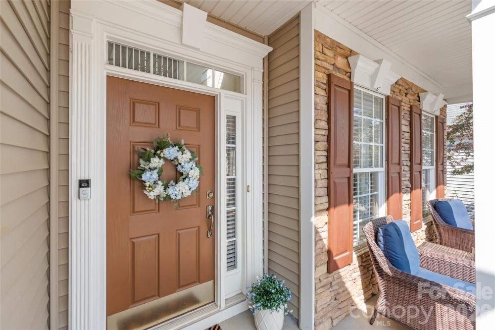 Welcome to easy living in this charming 1.5-story home with HOA-maintained lawn care! The main level offers both primary with ensuite bath and secondary bedroom, and another full bath while upstairs you’ll find a private third bedroom, full bath, and loft—perfect for a home office, hobby space, or cozy retreat. Enjoy beautiful details like crown molding, wainscoting, and tray ceilings in the formal dining room & primary bedroom. The kitchen features granite countertops, center island, and stainless steel appliances, opening to a bright living area with soaring ceilings and a gas fireplace with mantle-to-ceiling wainscoting. Relax year-round in the glass/screen-enclosed sunroom overlooking a peaceful, wooded backyard, or host gatherings on the stone-paver patio. Ideally located near Blakeney and Stonecrest with shopping, dining, medical offices, and quick access to I-485 and Ballantyne. There is an irrigation system which is serviced yearly. The Lawn maintenance provided by HOA includes mowing, edging, landscape maintenance, and upkeep of common areas. Washer, dryer & refrigerator do convey. Water heater replaced 2025. Sellers are providing a one-year 2-10 home warranty! Professional photos coming week of March 30.